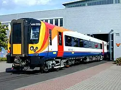 The British Rail Class 444 Desiro is an electric multiple-unit passenger train built by Siemens Transportation Systems in Austria between 2002 and 2004. The Class 444 currently operate on express passenger services for South Western Railway.