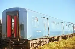 After the units were withdrawn from passenger service, they continued to be used by the Research department for further tests.[8] For this purpose, the units and individual carriages were all renumbered into the departmental series. The two Class 446 power cars were teamed with a newly built pantograph trailer and became TOPS Class 920, number 920001.[5] This was then used for the development of Classes 313–315.[9] The two Class 445 four car sets became TOPS Class 935, numbered 056 and 057 in the Southern Region departmental (non-revenue earning) unit series. 056 saw little use, being stored at Wimbledon Park until June 1980, when it was transferred to the Railway Technical Centre at Derby.