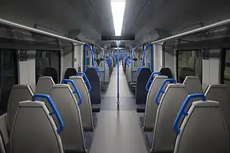 | Doors | Double-leaf pocket sliding, each 1,500 mm (59 in) wide (2 per side per car) |