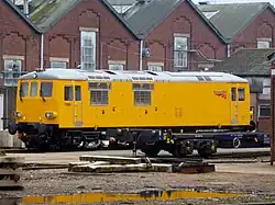 Commencing in 2013, five GB Railfreight Class 73s were re-engined as Class 73/9 by Brush Traction Wabtec at their factory in Loughborough. The first three converted locomotives, renumbered 73961-3 from 73209, 73204 and 73206 respectively, were fitted with MTU 1,600 hp V8 engines.[11] All existing mechanical and electrical components were removed prior to the re-fit, and the frontal appearance of the locomotives has been altered by the provision of light clusters and the installation of a more central location for the jumper cables. The dual driving positions have been retained although with a new design for the driver's controls. The refurbished locomotives will be capable of working with existing Class 73/1 and 73/2 units in either diesel or electric mode.[12] The first completed locomotive, 73962 (ex-73204), was unveiled on 3 August 2014 at Brush Traction Loughborough.