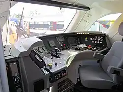 The Class 88 also has a primarily electric design, with most of the interior space of its machine room is occupied by electrical equipment, and the diesel prime mover housed in a separate room to the side of the central aisle.[7] However, in terms of power, the Class 88 holds an intermediate position between primarily electric locomotives with auxiliary diesel engines and fully dual-mode locomotives, such as Class 93 and Class 99.[8] It is powerful enough to haul a normal freight train in diesel mode on its own like a road switcher diesel locomotive,[9] although with only 17.5 per cent of the power it would otherwise have in electric mode, so in diesel mode it is mostly suitable to last mile operations in sidings or on freight-only branches.[8]