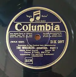 The first recording with "British Symphony Orchestra" on the label was of Ethel Smyth conducting the overture to her opera The Wreckers. Her connection with a BSO may appear valid, since Raymond Rôze had promoted The Wreckers during his "Opera in English" season in 1909. when the very first BSO under William Sewell was giving concerts in London. In 1919 Rôze had formed the second British Symphony Orchestra, which existed as a semi-permanent ensemble until 1923.