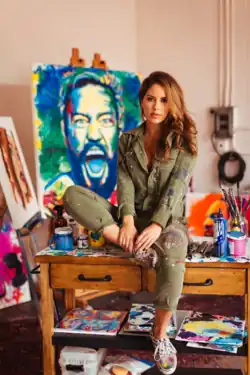 Palmer has raised over $100,000 in donations through her paintings with some of the biggest organizations, charities, and auctions in the World, most notably the AMFAR Galas in Milan, Hong Kong, NYC and Sardinia. She has been an artist ambassador with UNICEF, Steven Tyler of Aerosmith‘s Janie’s Fund, Generation Cure, and Lady Gaga‘s Born This Way Foundation. Palmer has exhibited her paintings alongside influential artists including Pablo Picasso, Damien Hirst, Kaws, Ai Weiwei, Mr Brainwash, Ellen Von Unwerth and Andy Warhol.[9]