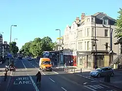 From 1891 until the 1950s Brixton Hill was served by a regular London tram service; it was cable-drawn until 1904 when it was replaced by a conventional electric tram.[2] The tram depot at Streatham Hill, opposite Telford Avenue, housed the tram cars, horses and the steam-powered winding gear for the cable. It is now a bus depot. Another surviving tram shed, which can still be seen near the junction of Brixton Hill with Christchurch Road, was designed by London County Council Tramways' architect G. Topham Forest, and had a capacity of 30 trams.[3]