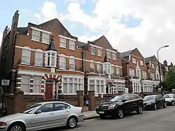 Construction began on the street in the 1870s and it was completed by 1887.[1] It takes its name from an estate in Sussex belonging to the Maryon Wilson family like many other roads in the area developed during the era.[2] It follows route of a much older pathway known as Gypsy Lane that linked the Kilburn and Belsize parts of Hampstead Parish.[3] The northern side of the street was badly damaged by German bombing during the Second World War due to its proximity to the railway lines. The bomb sites were bought by the LCC in 1947 and redeveloped as flats.[4]
