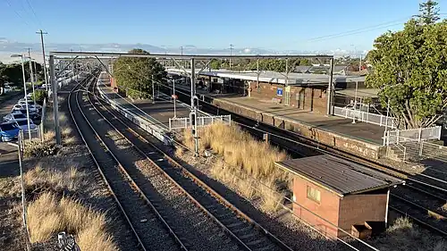 The island platform was accessed by a level crossing at the station's northern end until replaced by an underpass on 2 March 1973 opened by Minister for Transport Milton Morris.[3] The station was upgraded to wheelchair accessibility in July 2017.[4]
