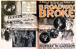 Broadway Broke is a 1923 American silent drama film directed by J. Searle Dawley and starring Mary Carr, Percy Marmont, and Gladys Leslie.[1][2] A struggling former Broadway actress tries to restart her career by turning to playwriting.