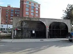 The streetcar tunnel saw several adaptive reuses. In the 1930s, the Boston Elevated Railway attempted to grow mushrooms in the tunnel, and in the 1980s it was used to test tactile platform edging for blind passengers.[25] The 1985-built fare lobby occupies a section of the old streetcar platform and tunnel. After the September 11th attacks focused attention on infrastructure safety preparedness, the MBTA used the tunnel to train firefighters to respond to a burning train.[25]