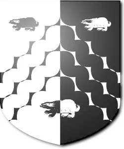 | Arms | Per pale Argent and Sable three chevronels engrailed between as many brocks all counterchanged. |