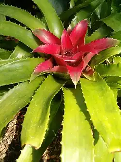 Bromelioideae is a subfamily of the bromeliads (Bromeliaceae). This subfamily is the most diverse in the family, represented by the greatest number of genera with about 40.[1] Most of the plants in this group are epiphytes, though some have evolved in, or will adapt to, terrestrial conditions. This subfamily features the most plant types which are commonly cultivated by people, including the pineapple.