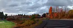 The old Bromfield school was built in 1878 by Peabody and Stearns, a well-renowned architecture firm based in Boston. By the early 1960s, the old building was getting too small for the town's rapidly growing population, only being able to accommodate around 100 students schoolwide.[12] In 1962, the current building and gymnasium were constructed to mitigate this issue. In 1989, the school built a new auditorium (named after town moderator John Cronin), a new parking lot behind the old building, band room, and hallway connecting the main building to the gymnasium. A 2003 expansion saw the construction of the south wing of the school, as well as a new library. Classes were held in the old building until this expansion.[13] Shortly after classes stopped being held in the old building, it began to be converted into the town's new library - as the old one was slowly reaching capacity. A large expansion was added to the old school building in 2007 and opened shortly after as the new Harvard Public Library.[14] The new building was partially renovated from 2022-2024, involving updates to locker rooms, bathrooms, and flooring. This renovation also included the unpopular decision to paint over a large mural in a stairwell which had been there since 2003.