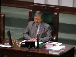 He won election to the 5th Sejm in a district outside Warsaw. On 26 October 2005, he was elected Vice Speaker of the Sejm. 398 MPs voted in favour of his candidacy. His party had earlier recommended him as a candidate for Speaker. His candidacy, in defiance of precedent, was rejected by Law and Justice (PiS) which voted for Marek Jurek. This created an unfavourable climate further discussions regarding a PO-PiS coalition.