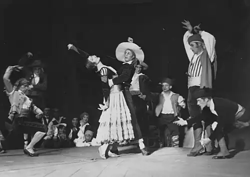 Subsequently, for her own ballet companies and for others, she danced in roles of her own inventions: in Holy Etudes, Touring, Le Guignol, and Night on Bald Mountain (all 1925); for Teatro Colón in Estudios religiosos (1926); in her Capricio Espagnole per Rimsky-Korsakoff in 1931; and in the 1934 ballet based on Hamlet per Liszt: the title role.[71] She performed into the 1930s, at venues in Europe and the Americas.