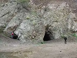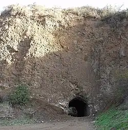 The craggy quarry remains are pockmarked by what appear to be cave openings, and therefore create an ideal backdrop for filming scenes meant to take place in a lonely southwestern wilderness. Scenes of the main cave entrance are normally filmed in a manner that shows the entrance at an angle because the cave is actually a very short tunnel through the hill, with the rear opening easily visible in a direct shot. The most well-known appearance of the tunnel entrance is likely its use as the entrance to the Batcave in the 1966–68 Batman television series.[2]