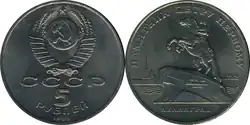 Commemorative coin released in the USSR in 1988 to commemorate the monument to Peter the Great