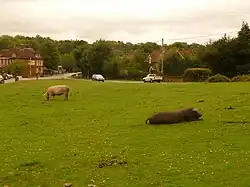 The hamlet contains a mix of 18th and 19th century cottages,[1] just south of the village of Bramshaw. There are two inns in Brook on opposite sides of the road – The Green Dragon and The Bell Inn.[2][3] Both buildings date from the 18th century, albeit with 19th and 20th century alterations.[4][5] Brook is also home to the club-house of Bramshaw Golf Club, which claims to be the oldest golf club in Hampshire.[6]