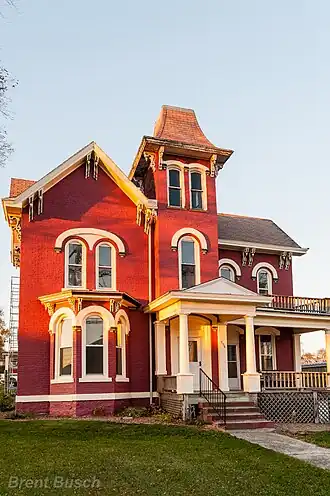 The Brooklyn Hotel is a historic building located in Brooklyn, Iowa, United States. John Byers, who operated a grocery store and billiard hall, built the structure as a house in 1875. Subsequent owners operated a hotel here. It was known as the Brooklyn Hotel as early as 1894.[2] Dr. Charles Busby was the exception. He operated a small hospital here in the early in the 20th century. The 2½-story building features a three-story entrance tower, bracketed eaves, window sills of limestone quarried nearby, and an irregular plan. The hotel was listed on the National Register of Historic Places in 1979.[1]