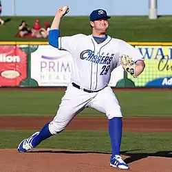 ![]() Pounders pitching for the Omaha Storm Chasers in 2016 | |||||||||||||||