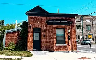 The Broom Factory is a renovated heritage building in the Inner Harbour neighbourhood of Kingston, Ontario, Canada. Constructed in 1894, it originally served as the factory of a broom company, and continued to be used by manufacturing or industrial businesses until the 1990s. After a time of being abandoned, the building was bought by the city, designated a heritage property in 2015, and bought by RAW Design in 2016, an architecture firm who remain the building's current owners.[1]