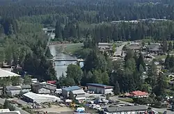 The Brotherhood Bridge is a road bridge in Juneau, Alaska.[1] The bridge carries the Glacier Highway over the Mendenhall River, acting as a demarcation point of sorts between the urban and rural portions of mainland Juneau.[2] The bridge was named in honor of the Alaska Native Brotherhood (ANB). It was designed by civil engineer Roy Peratrovich, Jr., the son of Roy and Elizabeth Peratrovich, who were leaders in the ANB and counterpart Alaska Native Sisterhood. Bronze plaques on the bridge refer to the Raven and Eagle clans of the Tlingit people.[3] Previous bridges across the Mendenhall River, at or near the same spot, were constructed in 1903, 1919 and 1931.[4] It was entered into the United States Geological Survey's Geographic Names Information System on March 31, 1981.[1]
