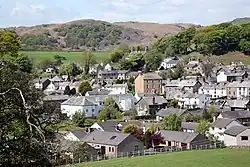 Broughton was historically a township in the ancient parish of Kirkby Ireleth, which formed part of the Lonsdale Hundred of Lancashire.[2] The township was known as "Broughton West" or "Broughton-in-Furness", to distinguish it from the other township in Lonsdale Hundred called Broughton, 14 miles (23 km) to the east, which was also known as Broughton-in-Cartmel or Broughton East.[3][4] St Mary Magdalene's Church at Broughton-in-Furness, although dating back to at least the 12th century,[5] was a chapel of ease to St Cuthbert's Church at Kirkby Ireleth until 1870, when an ecclesiastical parish of Broughton-in-Furness was created.[6]