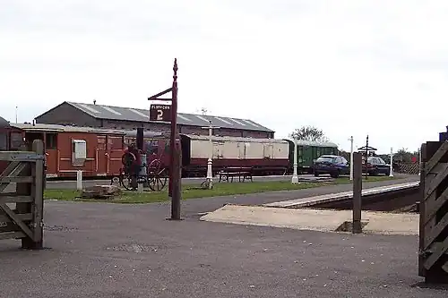 Brownhills West railway station is a heritage railway station on the Chasewater Railway in Staffordshire. It is the western terminus of the Chasewater Railway. The present facilities were constructed in the early 2000s after the original station, at a different location, stood in the way of the M6 Toll motorway.[1]
