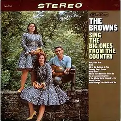 Browns Sing the Big Ones from Country is an album by American Country music group, the Browns, released in 1967 on the RCA Camden label. The trio took on a number of country hits at a time when listeners often preferred to hear the latest songs by their favorite singers and groups.