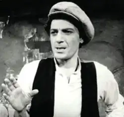 Bruce Adler (November 27, 1944 – July 25, 2008)[1] was an American Broadway actor. After debuting on the Broadway stage in the 1979 revival of Oklahoma!, he went on to a career that saw him nominated for Tony Awards as Best Featured Actor in a Musical for Those Were the Days (1991) and Crazy For You (1992).[1] His film work was limited to voice work in animated films, notably providing the singing voice for the peddler of the 1992 Disney film Aladdin and the 1996 sequel Aladdin and the King of Thieves.[2]