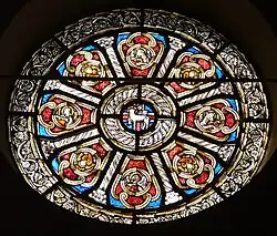 A painting by Vincenzo Comaschi, dated 1821, depicts the Virgin Mary with the Infant Jesus on her lap among angels and Saints Francis and Laurence. Near the high altar is a polyptych showing Scenes from the life of Christ.