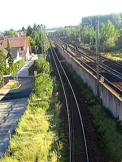 The Bruhrain Railway (German: Bruhrainbahn) is a railway line running from Bruchsal to Germersheim in the German states of Baden-Württemberg and Rhineland-Palatinate. Whilst it was part of a national trunk line (Magistrale) and handled long-distance traffic; today the line is exclusively worked by local trains.