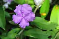 Brunfelsia latifolia, commonly known as yesterday-today-tomorrow and kiss me quick, is a species of flowering plant in the nightshade family. Endemic to Brazil,[1] it is an evergreen shrub that becomes semi-deciduous in cooler areas and grows up to 1.8 meters (6 feet) in height.