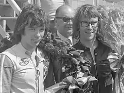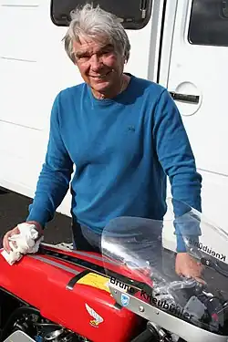 A year later, he showed his versatility at the 1973 Spanish Grand Prix by scoring second-place finishes in the 50cc, 250cc and 500cc classes.[1] At the 1974 250cc Dutch TT, he scored a second-place finish ahead of third-place finisher and future three-time world champion Kenny Roberts in the American rider's first Grand Prix race.[3] He had his best year in 1983 when he won two Grand Prix races and finished second to Angel Nieto in the 125cc class.