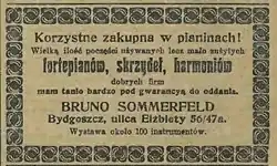The Bruno Sommerfeld Piano Factory (Polish: Fabryka Pianin i Fortepianów Brunona Sommerfelda) was a Polish piano manufacturing company that operated in the city of Bydgoszcz from 1905 to 1945. It was the largest piano factory in interwar Poland.[1]