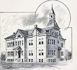 Schools in the Brunswick area date back to 1840, when a small one-room log "subscription" or private school was constructed. Following the Civil War, attention turned more toward public education, with the first public school opening in the town circa 1868.[11] A large three-story brick school was constructed in 1871 and served the community well into the early 20th century, being replaced by a new school in 1930–31. The present junior high / high school building used by Brunswick R-II school district was constructed in 1956–57. The most recent addition to the facilities is a new grade school constructed in 1991–1992.[5] In 1949 Missouri reorganized public education, with the state board of education consolidating or reorganizing many small rural schools into larger districts, this gave birth to the aforementioned Brunswick R-II district. The district, in student count, is the second largest in Chariton County, trailing Salisbury schools. Enrollment in all grades from 2006 to 2010 averaged 250 students.[12] The school colors are red and black. Their mascot is the Wildcat. Brunswick R-II participates in sports and other activities as a Class 1A school under guidelines from the Missouri State High School Activities Association.