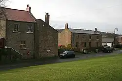 Even though it was last used for passengers in 1858, the rails up the incline from Shildon were left in situ well into the LNER days, to allow for firewood and coal deliveries to the former S&DR houses built at Brussleton bank.[38] A small community had developed at Brusselton Bank consisting of 50 houses; 42 on the north side, and eight on the south side, with the railway line running inbetween the houses.[iv][39] The engine house, the boiler house and chimney were converted into private dwellings, and the stone posts and fishbelly rails were taken away piecemeal, usually for museums.[35] Many of the former stone blocks which the rails were attached to instead of sleepers, were re-used at Stockton pier and in the sea wall at Saltburn-by-the-Sea.[40][41]