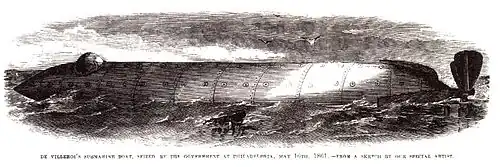 De Villeroi proposed a submarine design to the United States Navy, to counter the threat of Confederate States Navy ironclad warships. The Navy signed a contract with him in autumn 1861, for the submarine to be built in 40 days, for a sum of $14,000. The ship became the US Navy's first submarine, the Alligator. It was never officially commissioned and therefore does not have the "USS" prefix.