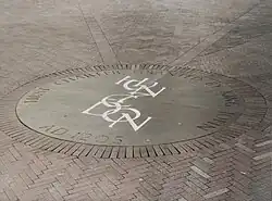 In the summer of 1969, David Palmer, a counsellor at UCLA and his family were touring the Cotswolds in England when they were directed to Bryant Fedden's Tan Yard Bank workshop by an owner of one of his name plate works. David Palmer was given a tour of the workshop by Bryant Fedden. It was during this tour that David Palmer saw an alphabet slate and in his words "I fell in love with it".[31] David Palmer could not afford to buy it but Bryant Fedden said that he could take it and perhaps find a buyer for it. David Palmer placed the slate in his touring van and then carried it onto the plane back to the USA. On arrival the slate was initially put on display at the UCLA Student Bookstore and then, after a period in storage, was moved to the School of Library Service at UCLA in the Powell Library basement.[32] It was on display in the Horn Press Chappel a group developed to utilise letter presses as part of a "Typography and the Graphic Arts" course developed by Professor Andrew H. Horn.[33] David Palmer published a small pamphlet cataloguing the journey of the slate from Winchcombe to UCLA entitled "The Bryant Fedden Slate: : Its Journey from Gloucestershire to the UCLA Library School" and used the Horn Press facilities to print it.[34] In 1992 the School of Library Service now named Graduate School of Library and Information Science moved to a new smaller building and the Horn Press Chappel was disbanded and the slate was moved to the Graduate School of Library and Information Science. In 1994 the Graduate School of Library and Information Science was incorporated into the UCLA Graduate School of Education and Information Studies (GSEIS).[35]