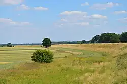 The settlement of Brzeg, historically located in the regional unit of Lower Silesia as opposed to Upper Silesia, is due to the formation of a "przesieka" ("clearing"). The "clearing" was a lateral formation, extending northerly from the former Sudetes Wildland to the southern foothills of the Sudetes Mountains.[38] The clearing's characteristics set it as a point for defence in the Lower Silesia region, lined with barrages made out of cut down woodland.[39] The Brzeg Plain was settled due to its fertile soil, allowing for the earliest forms of agriculture to develop in the locality. The locality was first settled by Silesian tribes and in later history, until 1675, by the Piast duchies of Duchy of Brzeg, Legnica and Wołów, united under the Duchy of Legnica-Wołów-Brzeg. Presently, the region is spotted with numerous towns, including Brzeg, Grodków and Strzelin, as well as villages, with agriculture providing the major source of income. The development of agriculture is met with a lack of forested areas, apart from the Stobrawa Landscape Park, located 7.2 km to the north of Brzeg and the Oder river. The Stobrawa woodland, agriculture and the Oder (as a form of transport) provided Brzeg the necessary diversity to remain the regional trade capital in Silesia.[40][15]