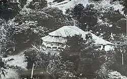 The residency underwent no significant restorations or changes between 1929 and 1940 because the country's economy was greatly enhanced by the growth of the oil industry. Though specifics are still unknown, estimates for 1940 included $3,500 for "alterations and repairs" to the residency, part of which might have gone toward a new garage and an addition on the building's southern side. The residency served as Japanese headquarters during the Japanese occupation of Brunei in December 1941.[a][12] The residency only sustained a few bullet wounds in the roof from Allied aircraft machine guns during the 1944 bombardment of Brunei Town. Despite the town's extensive destruction, the residency appears to be mostly intact in a 1948 annual report shot. Wing Commander K. E. H. Kay served as the Senior Civil Affairs Officer during the brief British Military Administration occupation of the residency following the June 1945 landing of Allied forces at Muara Beach.[13] Sultan Ahmad Tajuddin was cordially greeted by the Australian 9th Division upon his return to Brunei Town on 17 June 1945, following the liberation of Brunei by the Australian Army. In the residency, the Australian military commander arranged for him to be greeted with a Guard of Honour and served tea.[14] British Resident John Peel returned to the residency once civil authority was restored in July 1946.[13] According to reports and photographs, the garage and addition were constructed about 1948.[15]