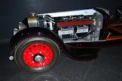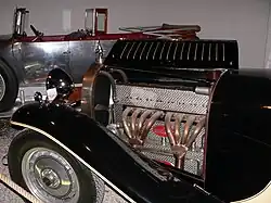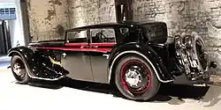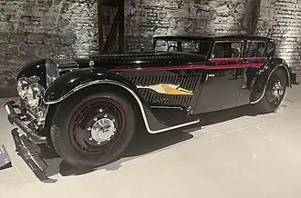 The Bucciali TAV 12 (alternatively also 8-32 or Type 7) is the last model from the French car manufacturer Bucciali. Introduced in 1931, the TAV 12's history and characteristics are not fully understood.[2] Unusual for the time, it had front-wheel drive and sensational bodywork, the flat and long limousine version of which was also known as la flèche d'or ("the golden arrow"). The vehicle, of which only one is known, was dismantled into its individual parts before the outbreak of the Second World War. A collector had it rebuilt 40 years later.[3] Since the early 1990s, the TAV 12 has been ready to drive again and is shown at exhibitions from time to time.