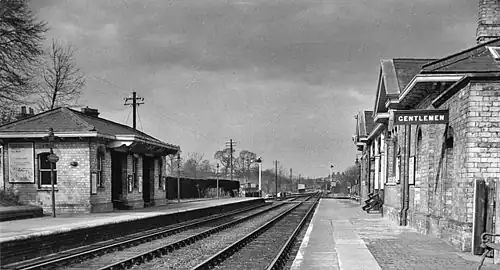 Passenger traffic over the line was never particularly heavy, although it was a useful goods route. In the face of increased competition from buses and the private motor car in the 1920s and 1930s, passenger levels declined. By the late 1940s, Sunday passenger services were withdrawn and there were now only four services each way on weekdays. The line was also hit hard by the ASLEF strike of 1955 which saw much of the milk traffic lost to road.[12] A form of reprieve came in 1956 when British Rail attempted to reduce losses by introducing lightweight single unit diesel cars (9 up and down daily) in 1956 between Banbury and Buckingham as part of the 1955 Modernisation Plan. Although this experiment was rewarded by an increase in traffic of over 400%,[13] British Rail nevertheless claimed that the line was uneconomic.[14] The section between Banbury and Buckingham closed on 2 January 1961, leaving Buckingham as the terminus for the branch passenger traffic.