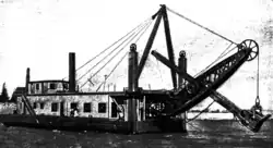 In 1904 Bucyrus supplied 77 of the 102 steam shovels used to dig the Panama Canal.[9] These were 95 ton models with five-cubic-yard buckets that could move approximately eight tons of material at once. They were operated by a crew of four. Similar to a locomotive, the crew was headed by an engineer, and included two firemen who stoked the boiler with coal, and a craneman. A support crew of six on the ground laid rails on which the shovel moved. A photograph of President Theodore Roosevelt was taken in November 1906 operating a Bucyrus shovel in Panama during his inspection trip. In March 1910, a single Bucyrus shovel excavated 70,000 cubic yards in 26 days at the Culebra Cut, setting a canal construction record. Each shovel averaged over 1,000,000 cubic yards of earth excavated at the cut.[10]