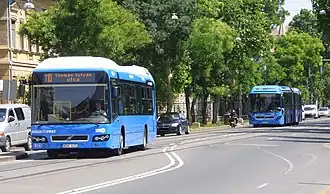 Budapesti Közlekedési Zrt. or BKV Zrt. (Hungarian pronunciation:[ˈbudɒpɛʃtiˈkøzlɛkɛdeːʃiˈzeːjɛrteː], "Budapest Transit Company", the abbreviation BKV stands for its earlier name Budapesti Közlekedési Vállalat) is the main public transport operator in Budapest, Hungary. BKV was established in 1968 as a unified public transport company with the merger of the companies responsible for the different means of transport; bus operator FAÜ (Fővárosi Autóbuszüzem), tram and trolleybus operator FVV (Fővárosi Villamosvasút), suburban railway operator BHÉV (Budapesti Helyiérdekű Vasút) and riverboat operator FHV (Fővárosi Hajózási Vállalat). The metro was added in 1973.[1] The transport in Budapest underwent another reorganization in 2010 when the BKK (Budapesti Közlekedési Központ, "Budapest Transit Centre") was founded for the management of the city transport and infrastructure.[2]