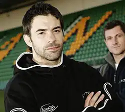 He started in the Northampton side that won the 2000 Heineken Cup Final, defeating Munster at Twickenham.[6] He was club captain from 2001 to 2004.[7] He had broken his nose twice that season, but with the Northampton squad stretched, he had continued to offer himself for selection.[8] In September 2003 he sustained a broken ankle while playing a pre-season friendly match for Northampton.[9] He did not recover sufficiently from that injury and in February 2004 he announced his retirement from playing rugby.[10] He made 215 appearances for Northampton and scored 46 tries, playing in 104 English Premiership matches.[1][11]