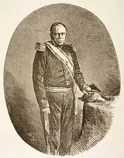 Having achieved independence from Haiti in 1844, he was president of the brand new Dominican Republic on five occasions, a position in which he had some achievements, such as the founding of the first secondary school in the country, Colegio San Buenaventura; But, in general terms, Báez ruled dictatorially, orchestrating murders, engaging in politcial schemes, and alternating his first three terms. In 1861, he opposed annexation to Spain because the person promoting it was his longtime political enemy, Pedro Santana; However, after a few months, Báez managed and obtained the rank of marshal of the Spanish Army, with the intention of achieving the governorship of the overseas province that the country had become, which he did not achieve. Shortly after the Dominican Restoration War, the Dominican Republic regained its independence.[2]