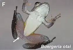 - ^ a b c d IUCN SSC Amphibian Specialist Group. (2021). "Buergeria otai". IUCN Red List of Threatened Species. 2021: e.T146057852A146057860. doi:10.2305/IUCN.UK.2021-1.RLTS.T146057852A146057860.en. Retrieved 14 January 2024.