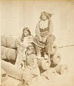 ![]() Black Horse with his wife and child at Fort Marion, Florida. | |||||||