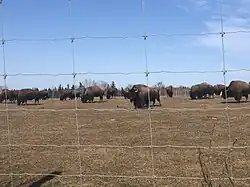 In 1973, the province of Alberta gifted the province of Prince Edward Island a herd of 15 bison.[2] The bison have served as a tourist attraction for Prince Edward Island since then. In 2014, the government transferred the park to the Buddhist charity Moonlight International. Prior to this transfer, the government had been spending $40,000 annually on operating costs. In 2014, there were 38 bison in the park. In 2018, there were 56 bison in the park, partly due to the Buddhist belief in not harming animals.[3]46°5′33″N 62°37′4″W / 46.09250°N 62.61778°W