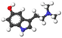 Bufotenin, also known as dimethylserotonin or as 5-hydroxy-N,N-dimethyltryptamine (5-HO-DMT), is a serotonergic psychedelic of the tryptamine family. It is a derivative of the psychedelic dimethyltryptamine (DMT) and of the neurotransmitter serotonin (5-hydroxytryptamine; 5-HT). The compound is an alkaloid found in some species of mushrooms, plants, and toads. It is also found naturally in the human body in small amounts.[7][8][9] Bufotenin, for instance derived from the trees Anadenanthera colubrina and Anadenanthera peregrina, has a long history of entheogenic use as a snuff in South America.[1][5][10][11]