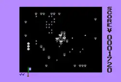 Bug Off! is a single screen fixed shooter for Atari 8-bit computers written by Sparky Starks[2] and published by Adventure International in 1982.[3] QuelleSoft released the game in Germany as Kampf dem Ungeziefer ("Fight the Bugs") in 1984.[1]